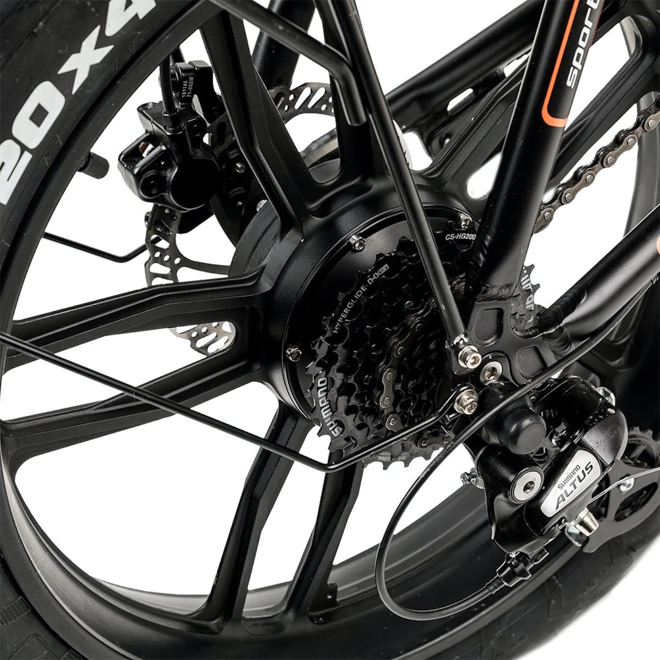 RS5 HERO har allt du kan tänka dig i klassens häftigaste Elcykel. Här får du ett kraftfullt kvalitetsbatteri (12.5AH), LCD-display i färg, 7-växlar från Shimano och en kvick 250W motor. De rejäla allterrängsdäcken gör att tar du dig fram på alla typer av underlag. Hydrualiska skivbromsar både fram och bak gör att du känner dig trygg även i högre hastigheter. Med både vikbart styre och mittram packar du smidigt med dig cykeln på resan. Det uttagbara batteriet laddar du enkelt hemma genom att låsa upp det från elcykeln med medföljande nyckel.