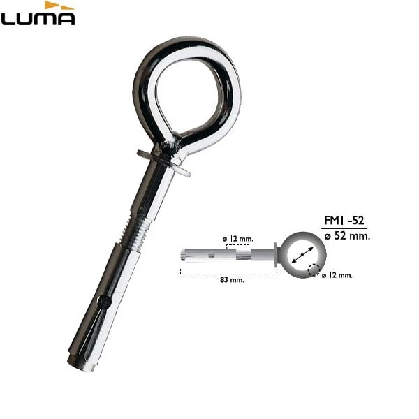 Väggankare i härdat stål. 12mm i diameter. Enkel att montera i väggen med expanderade hylsor för att låsa fast cykel, skoter, moped eller annat fordon i väggen.