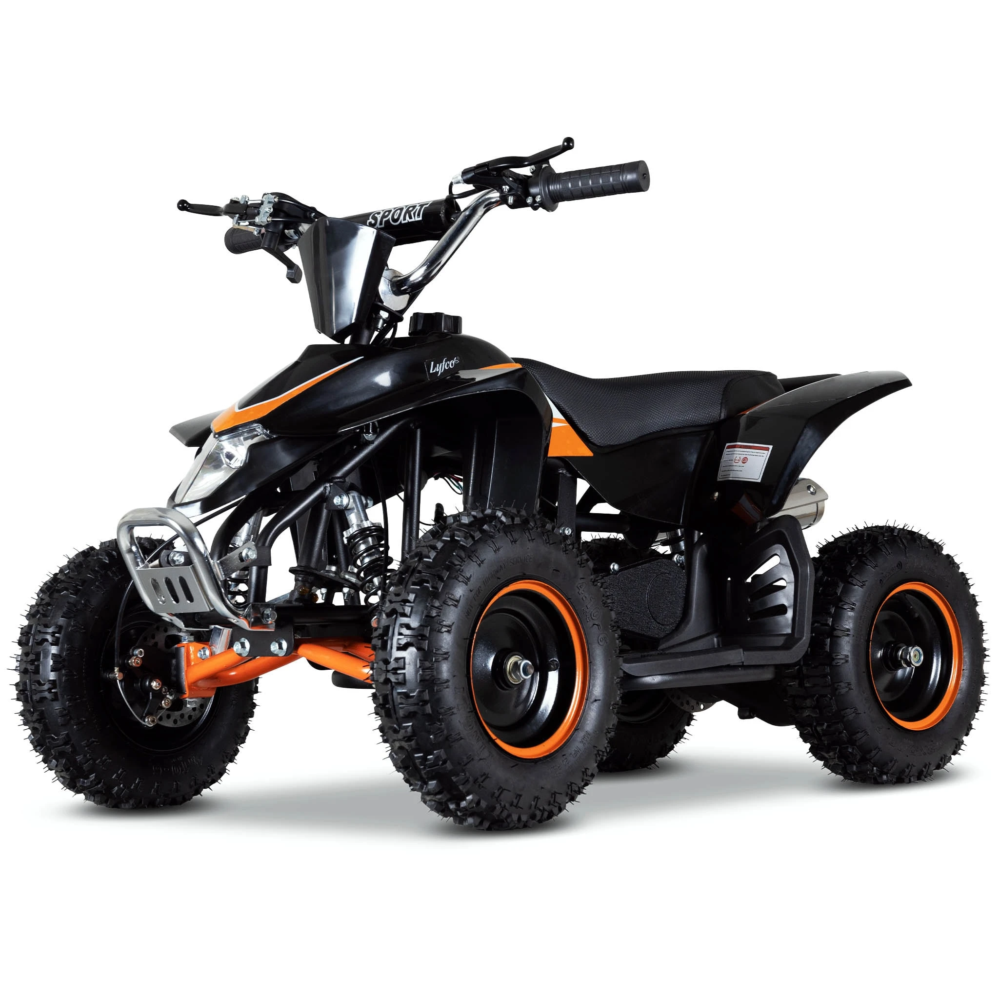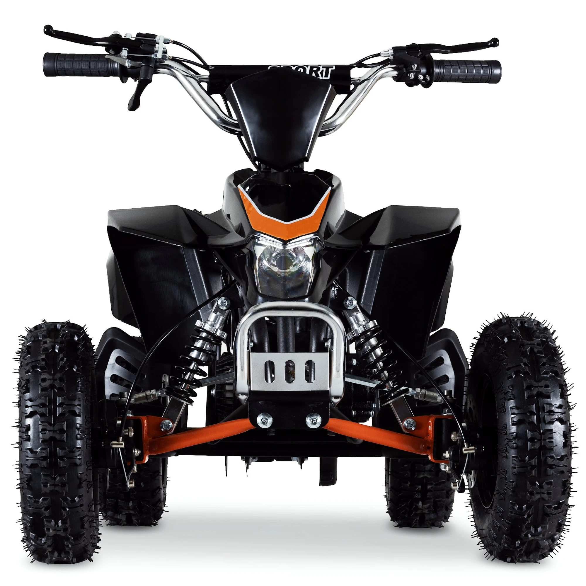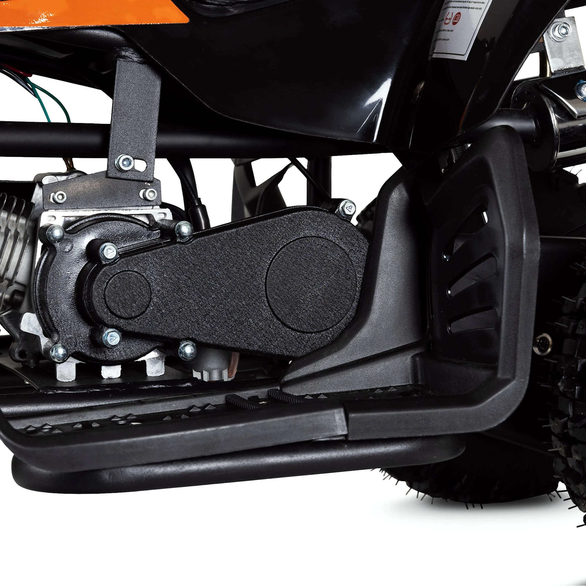 Tuff fyrhjuling för barn. ATVn är utrustad med 49 cc motor samt ett lättanvänd snörstart. Hastighet upp till 40 km/h. Lämplig för barn mellan 4-7 år. Med den automatiska kopplingen utan växlar är den mycket lätt att använda och de extra stora hjulen gör den stabil. Trots det låga priset har den här modellen en rejäl konstruktion som tål lite tuffare terräng.