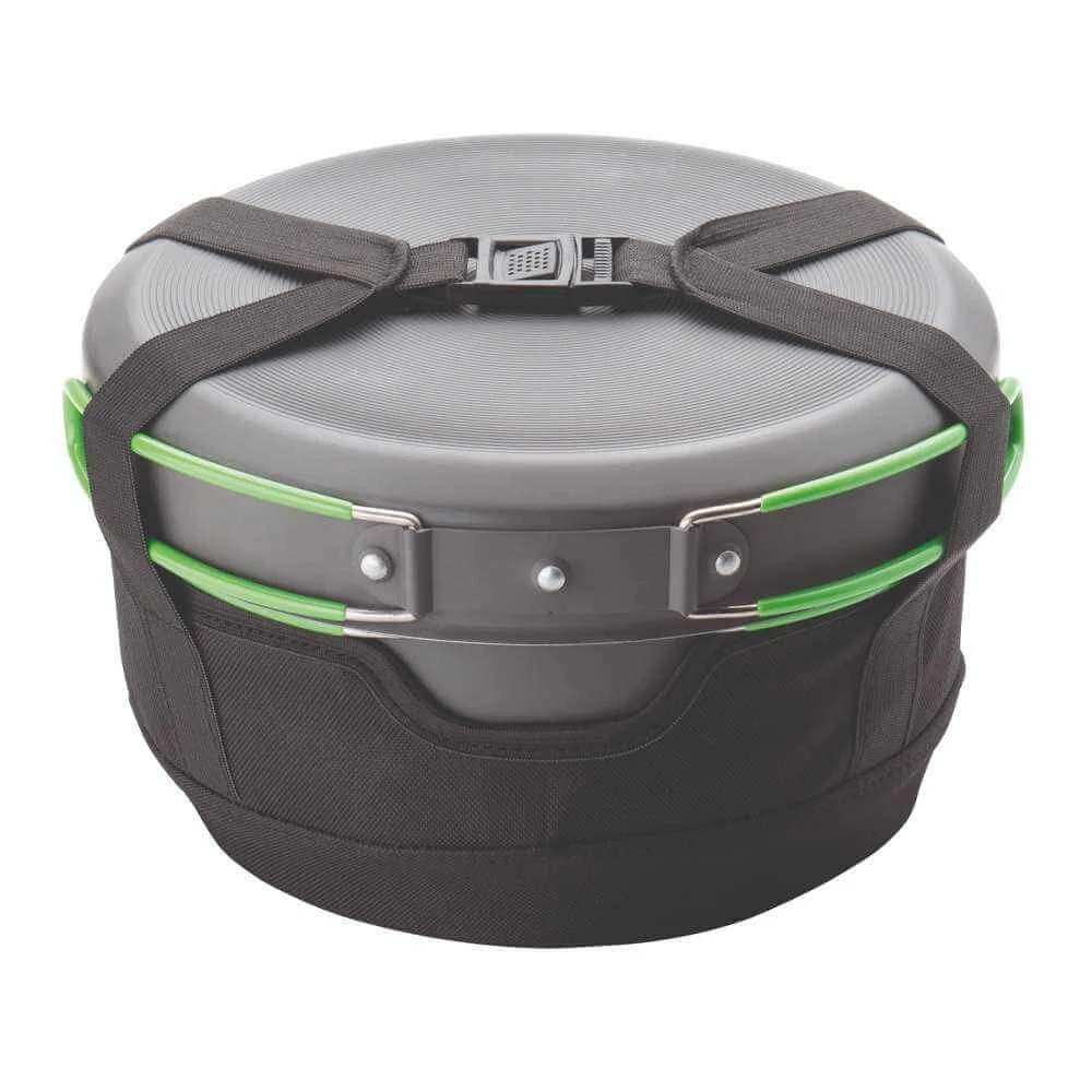 Terra Camp 4 är ett effektivt 7-delat kokkärlsset från Optimus. Innehållande en non-stick keramisk stekpanna med underlägg/repskydd, 2 kastruller med hållbart PTFE non-stick överdrag med tillhörande lock och en Thermobag. Tack vare utformningen på undersidan av kokkärlen står de stabilt på brännaren.