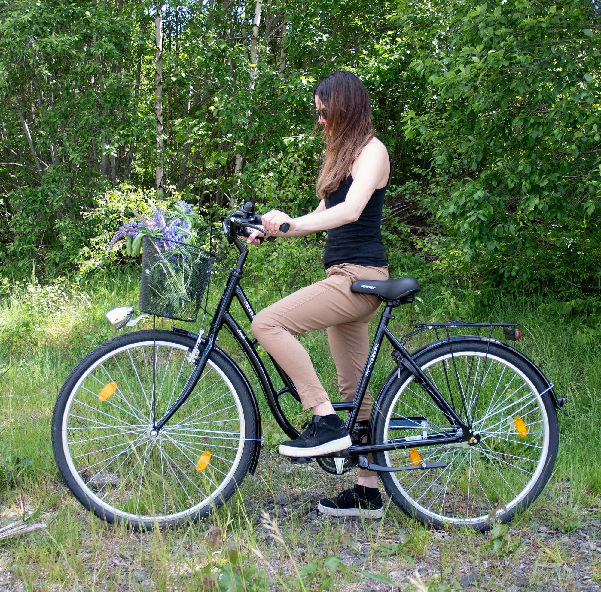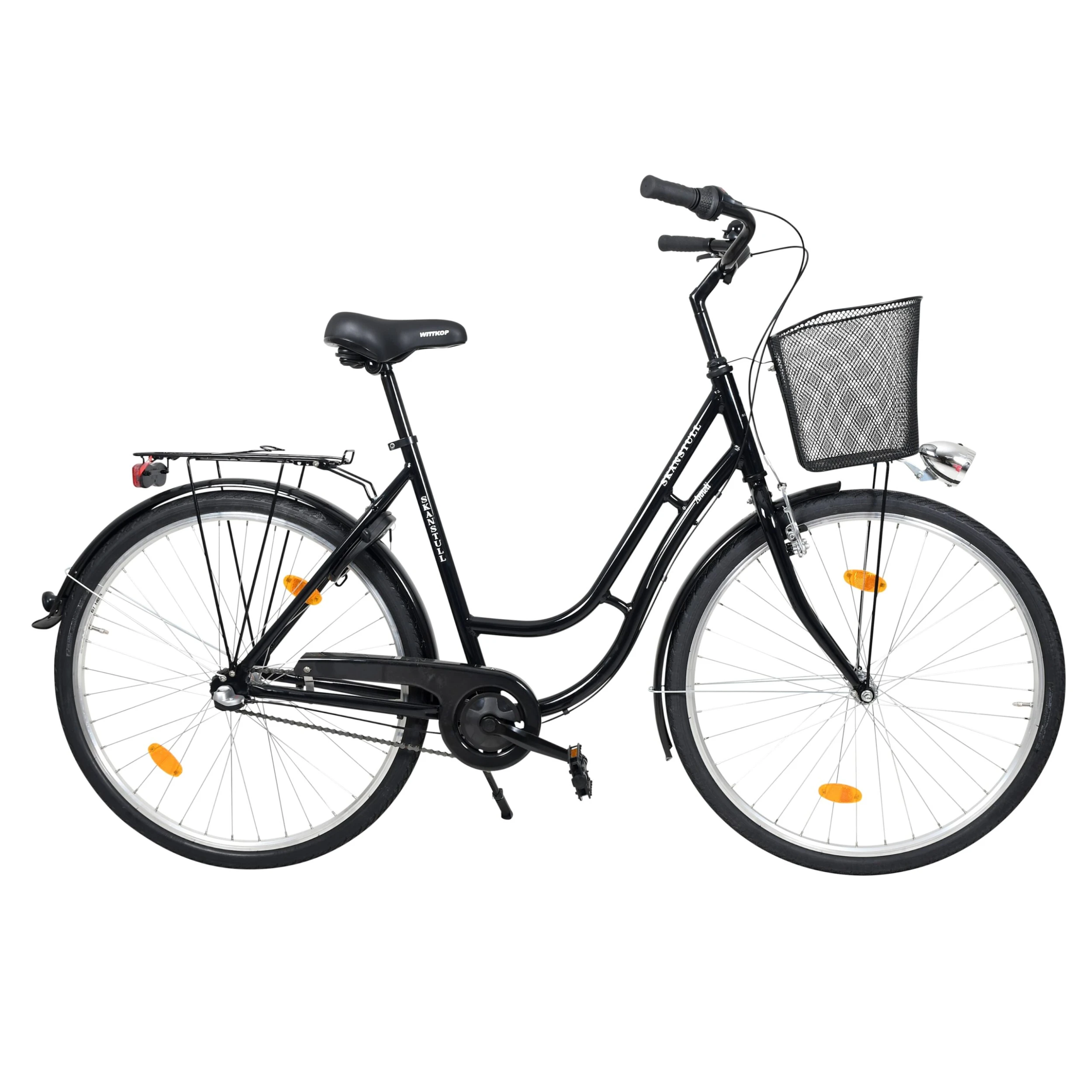 3-växlad cykel med svartlackerad aluminiumram. Med cykelkorg, lyse, lås och pakethållare.