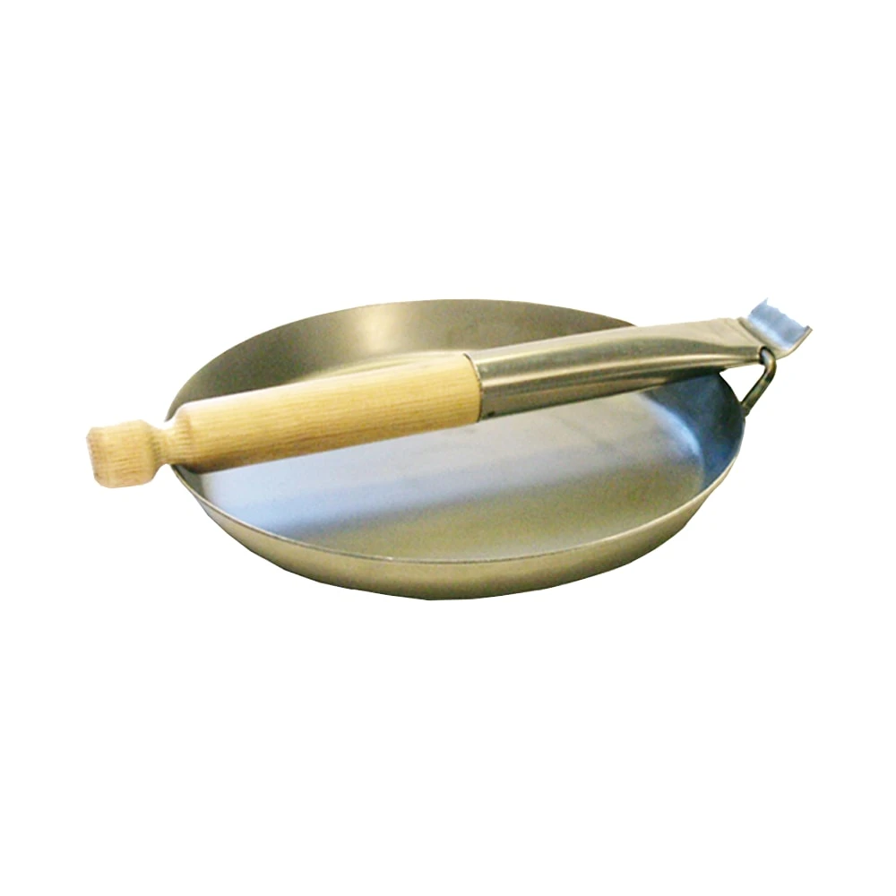 Praktisk jägarstekpanna för matlagning över öppen eld. Med ett funktionellt fällbart trähandtag som gör det enkelt att ta med sig stekpannan i till exempel ryggsäcken.