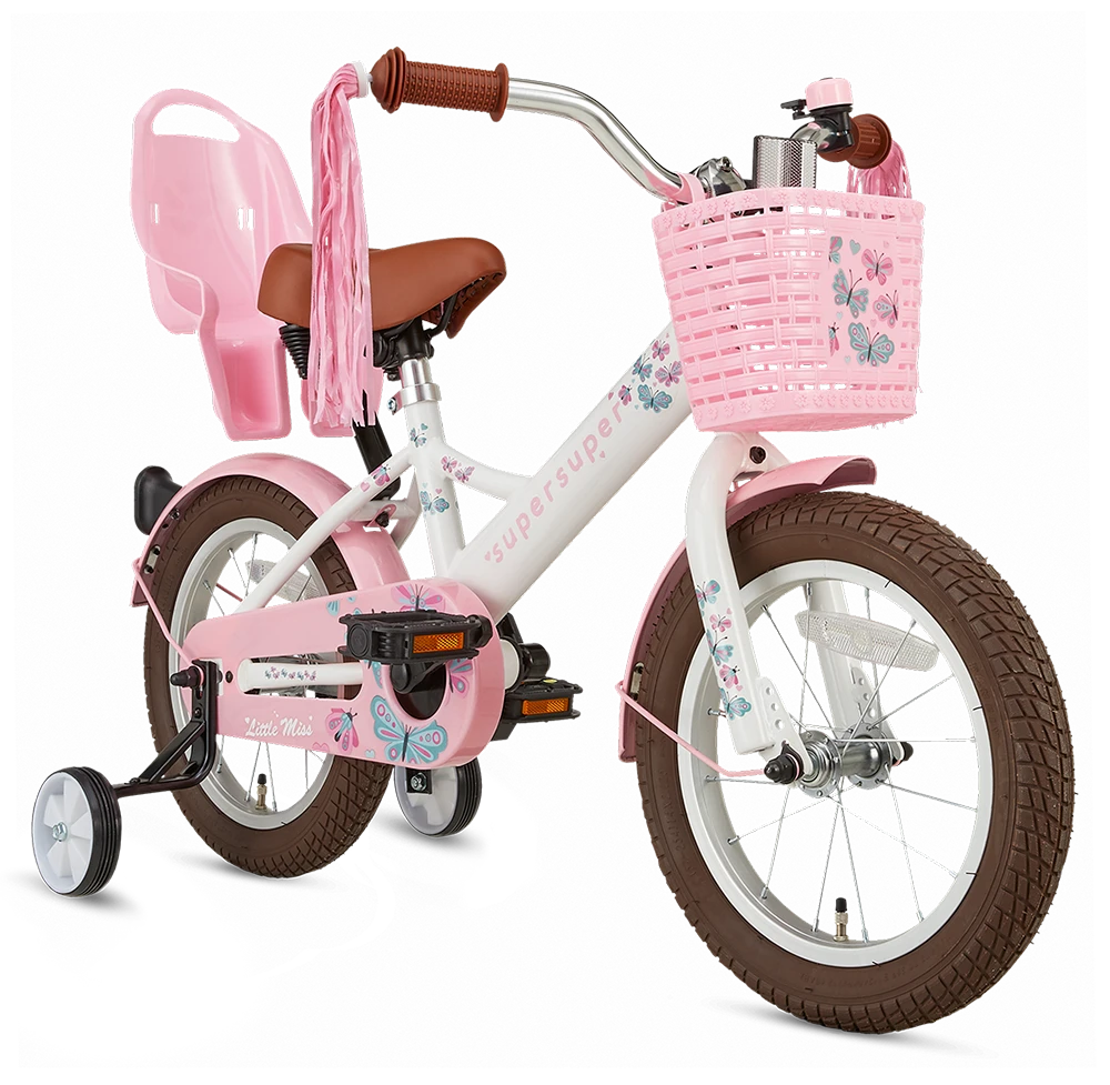 Denna superfina barncykel är i en klass helt för sig själv när det kommer till en kombination av hög kvalitet, säkerhet och design. Cykeln bjuder på många fina detaljer och levereras med stödhjul, cykelkorg och dockstol.