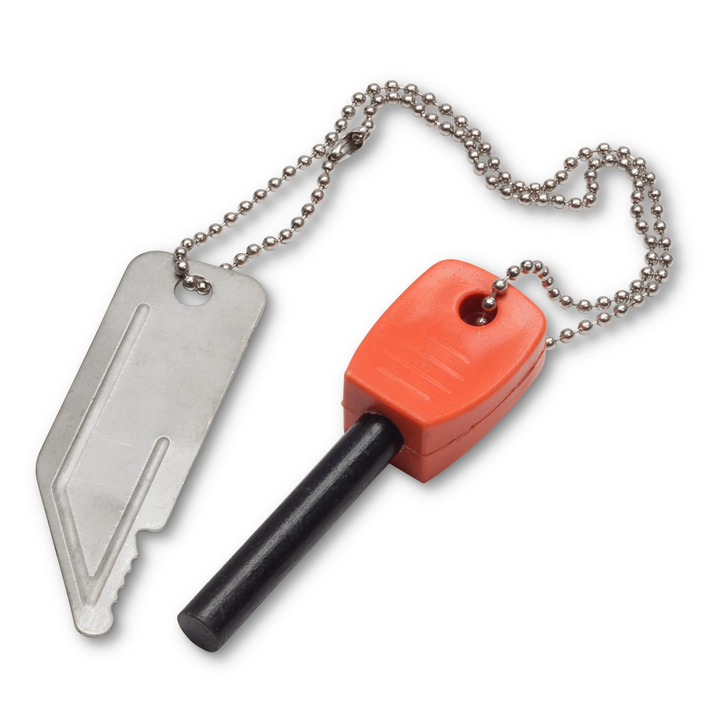 Tändstål med skrapbleck, avger ca 3000 gr C varma gnistor som gör det lätt att göra upp eld i alla väder.
