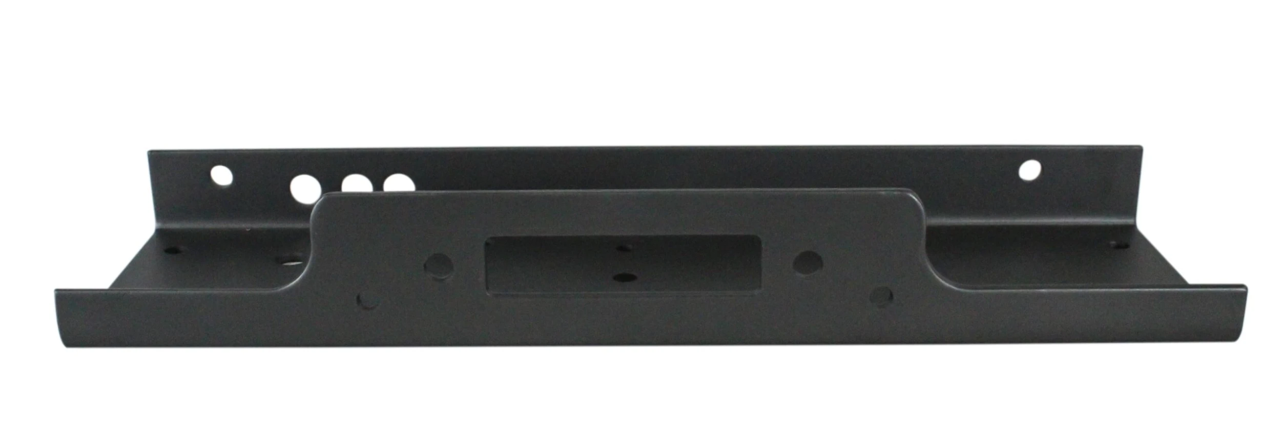 Monteringsplatta i metall med vikta kanter för stabilitet. Monteringsplattan har uttag för vajerguiden och förberedda hål för att fästa vinschen.